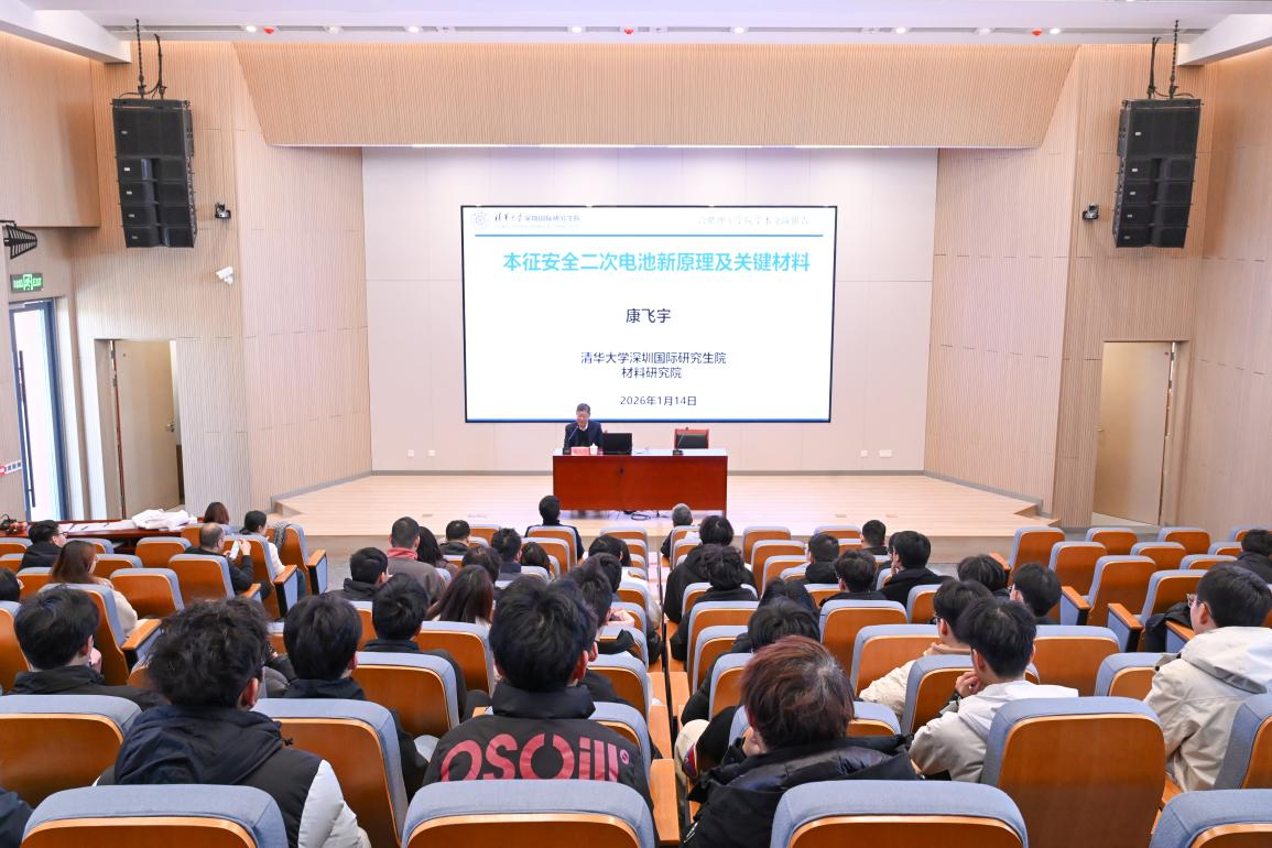 2026年1月14日上午10点,材料科学与工程学院2026年第一期“材聚讲坛”邀请了国际知名碳材料与电池技术专家、清华大学深圳国际研究生院康飞宇教授作题为“本征安全二次电池新原理及其关键材料”的学术报告。报告会由学院院长、国家杰出青年科学基金获得者余彦教授主持。
